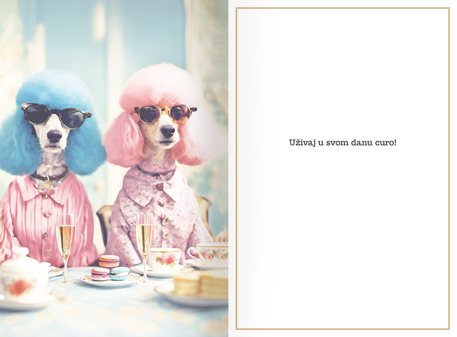 Uz čestitku dolazi koverta, te se koverta i čestitka nalaze u foliji.