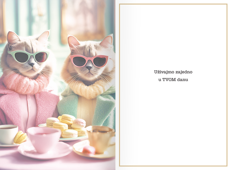 Uz čestitku dolazi koverta, te se koverta i čestitka nalaze u foliji.