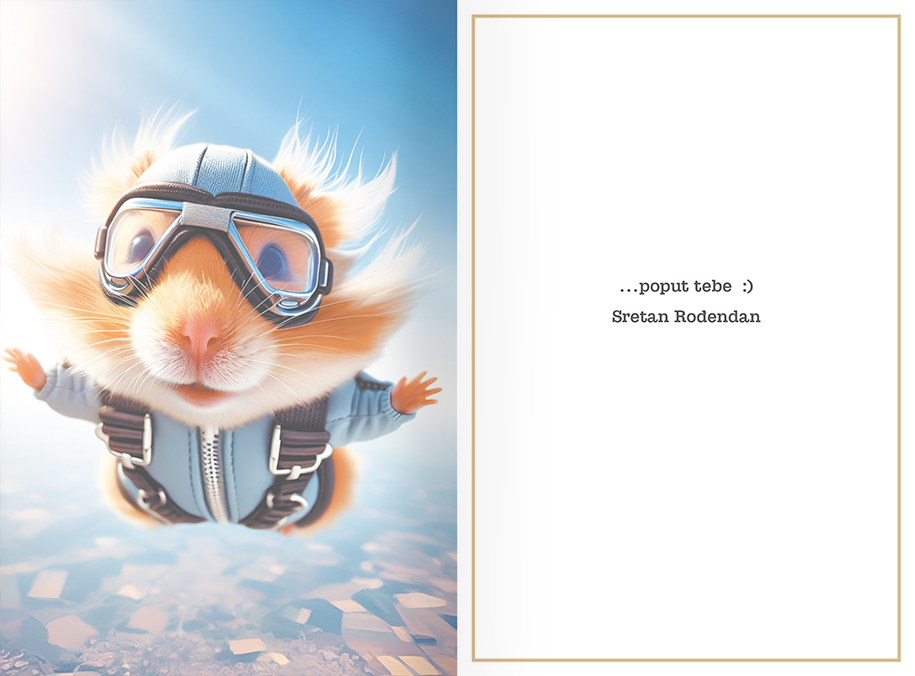 Uz čestitku dolazi koverta, te se koverta i čestitka nalaze u foliji.
