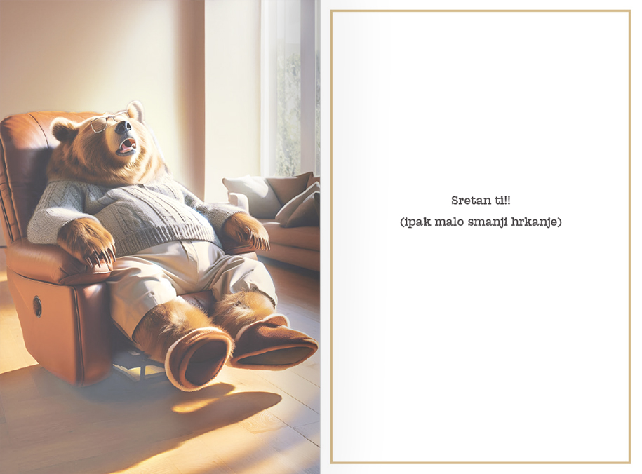 Uz čestitku dolazi koverta, te se koverta i čestitka nalaze u foliji.