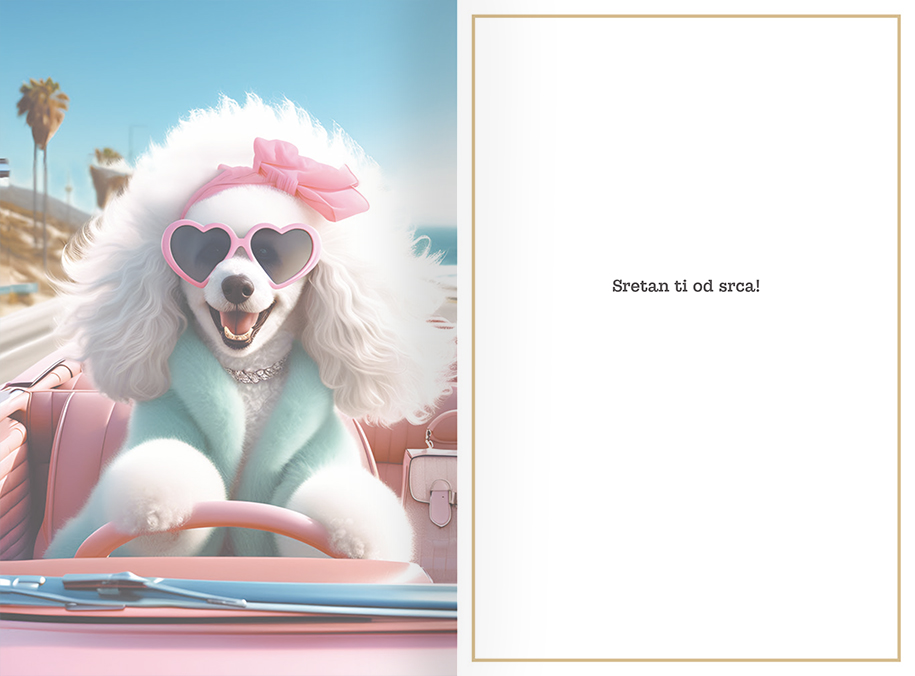 Uz čestitku dolazi koverta, te se koverta i čestitka nalaze u foliji.