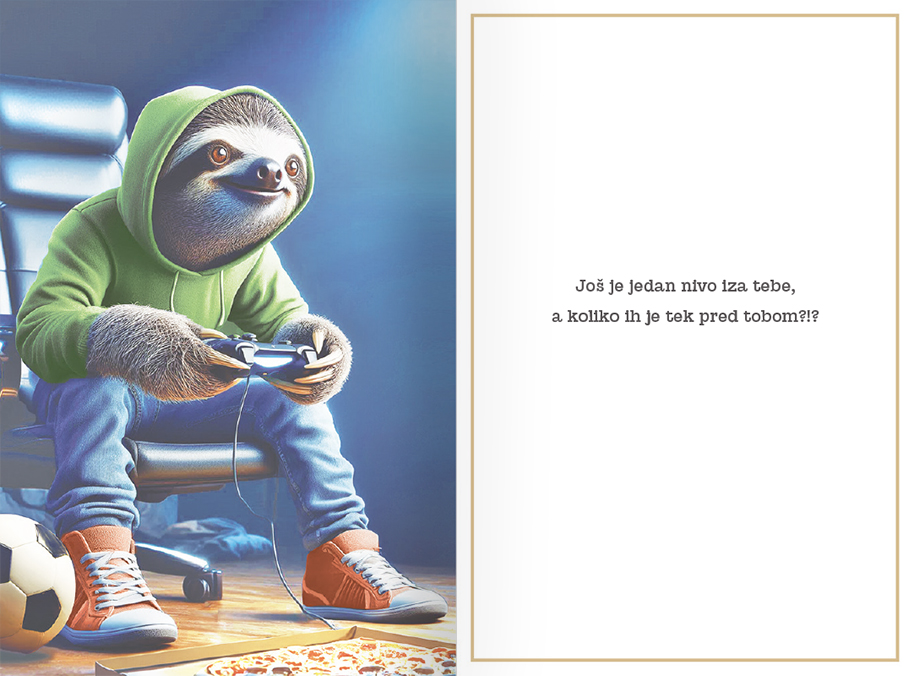 Uz čestitku dolazi koverta, te se koverta i čestitka nalaze u foliji.
