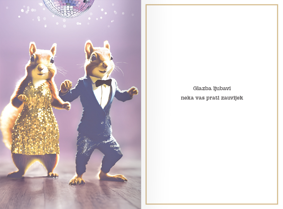 Uz čestitku dolazi koverta, te se koverta i čestitka nalaze u foliji.